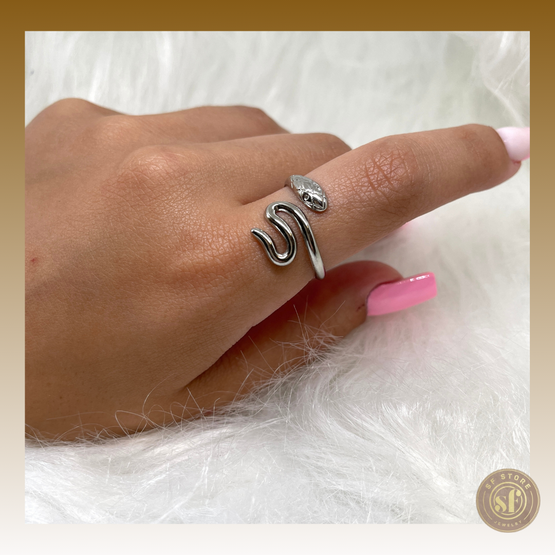 Este anel minimalista destaca-se pelo seu design simples e elegante, apresentando uma cobra delicadamente esculpida. A peça combina a durabilidade do aço inoxidável com a simbologia poderosa da cobra, representando renovação e transformação. Ideal para quem procura um acessório discreto mas significativo, este anel é perfeito para uso diário, complementando qualquer estilo com um toque subtil de sofisticação.