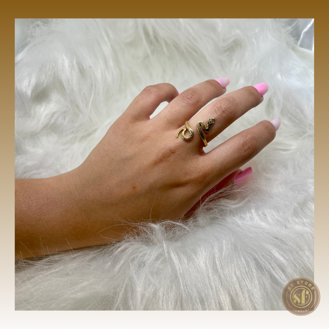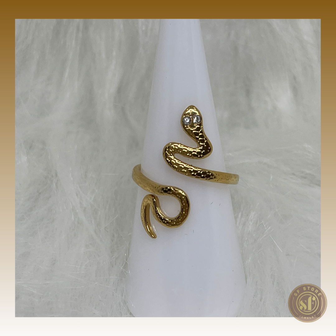 Este anel intrigante e moderno é feito de aço inoxidável, proporcionando uma combinação perfeita de durabilidade e estilo. O seu design ousado apresenta uma serpente detalhada, simbolizando poder, transformação e sabedoria. Um anel moderno e arrojado, perfeito para destacar uma personalidade única e que acrescenta um toque de audácia e modernidade para complementar qualquer look.