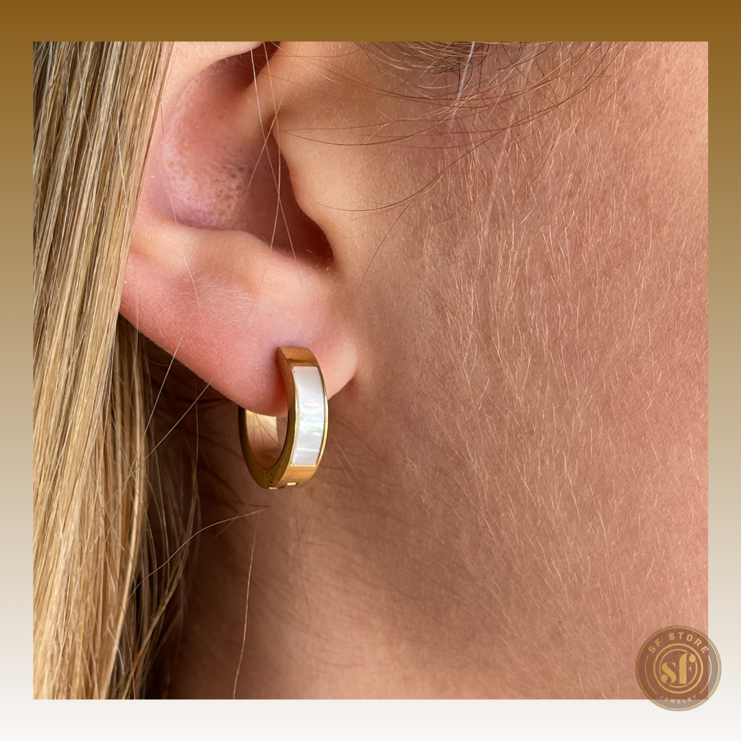 Estas elegantes argolas em aço inoxidável são adornadas com delicadas peças de madrepérola, que conferem um toque de sofisticação e brilho suave ao seu visual. A madrepérola, reflete a luz de forma encantadora, oferecendo um contraste subtil e refinado com o acabamento polido das argolas. Com um design compacto e moderno, estas argolas são perfeitas para o uso diário, proporcionando um toque de elegância discreta. Leves e confortáveis, são a escolha ideal para quem procura um acessório sofisticado e versátil.