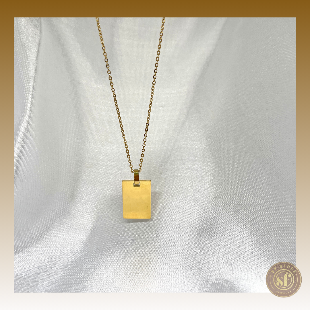 Este colar apresenta uma chapa retangular de tamanho médio, ideal para personalização através de gravação a laser de frases, datas ou símbolos significativos. Fabricado em aço inoxidável, o colar garante durabilidade. A chapa oferece uma superfície perfeita para gravar mensagens especiais, datas importantes ou símbolos que tenham um significado pessoal, tornando-o um acessório único e sentimental. Ideal como presente ou para uso próprio, este colar permite que carregue consigo memórias preciosas de forma elegante e discreta. Perfeito para qualquer ocasião, ele adiciona um toque de personalização e estilo ao seu visual diário ou a eventos especiais.