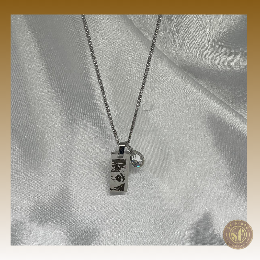 Este colar é uma peça verdadeiramente especial, focada na essência do olhar. Nesta gravação a laser, apenas o olhar é destacado, criando uma representação única e pessoal. Fabricado em aço inoxidável, este colar é elegante e duradouro, ideal para quem deseja capturar e levar consigo a expressão mais profunda de alguém especial. Uma escolha perfeita para um presente significativo ou para um toque pessoal no seu próprio estilo.