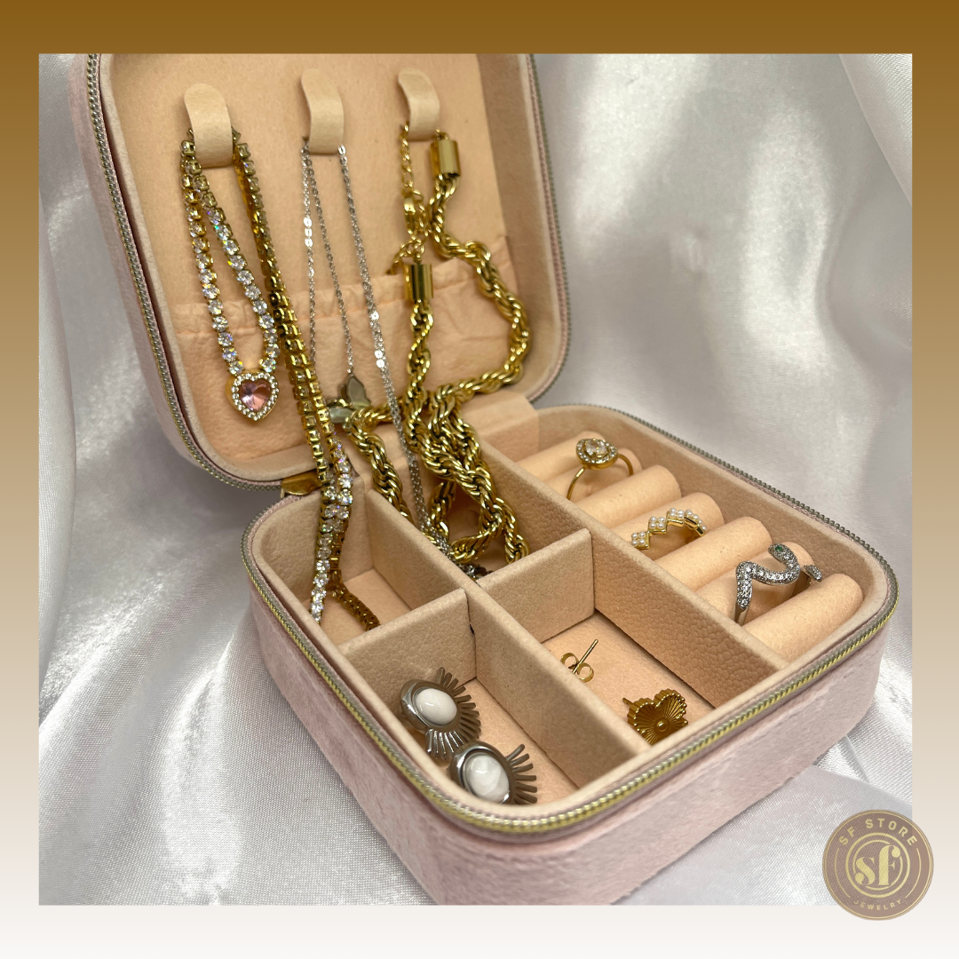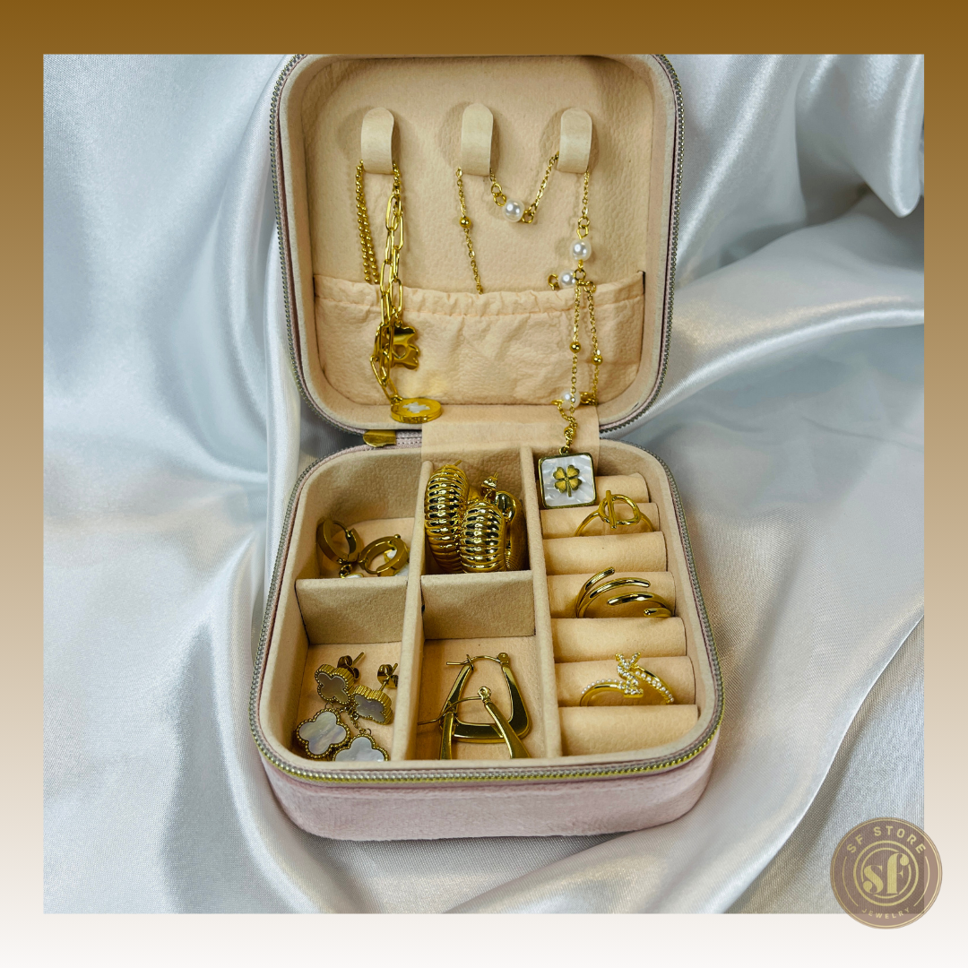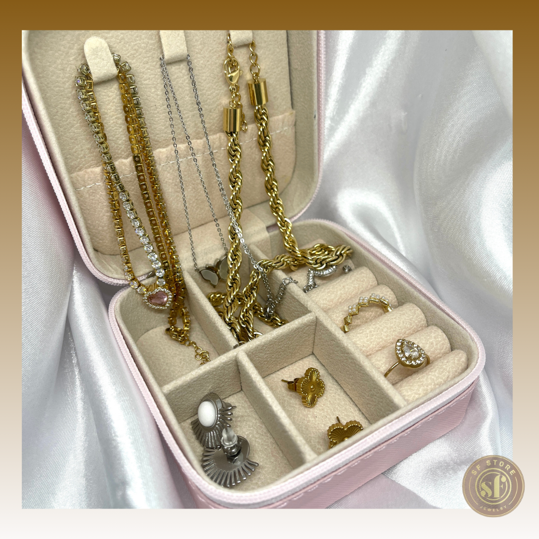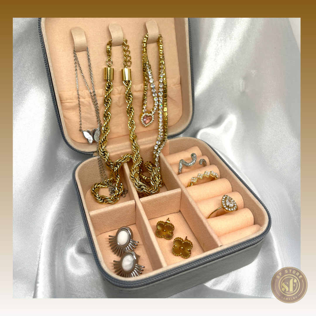 Um pequeno guarda-joias, é um acessório prático e indispensável. Ideal para quem deseja manter as suas joias organizadas e seguras, quer seja em casa quer vá de viagem.
